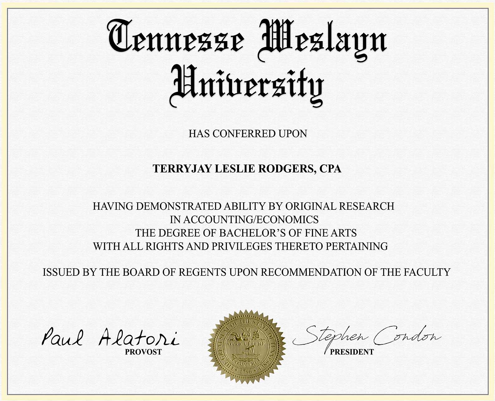 NOVELTY TENNESSE WESLAYN COLLEGE DIPLOMA